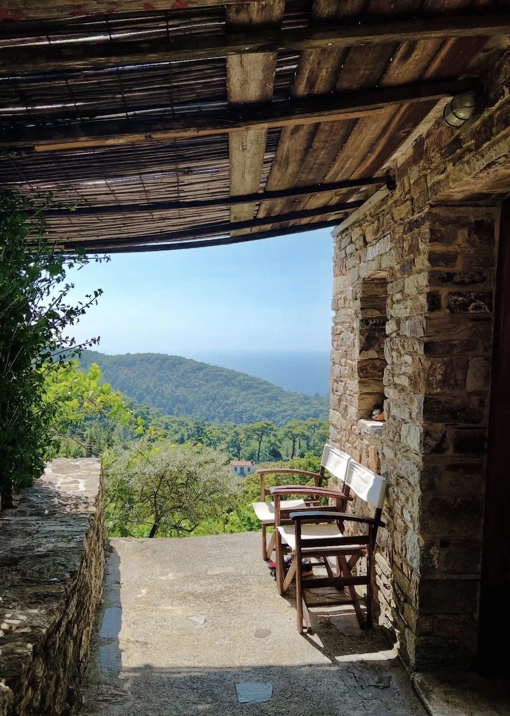 The Karimalis estate sits at the heart of Ikaria: a 500-year-old winery and farmstay set within a certified organic vineyard run by George and Eleni Karimalis. Guests stay in two traditionally restored stone houses opposite the winery, built from wood, stone and local materials, in structures that are over four centuries old.